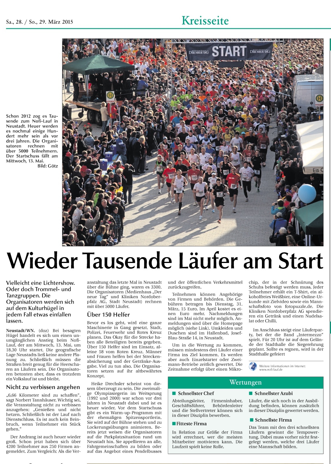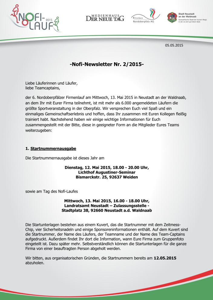 Es hatte sich im Vorfeld abgezeichnet, dass der 6. Nordoberpfälzer Firmenlauf eine RekordVeranstaltung wird. 5142 Läufer überquerten die Ziellinie. Das Wetter war für die Sportler optimal und die Party im Anschluss kam auch gut bei allen Teilnehmern an. Alle Bildergalerien zum Lauf erreicht ihr über den Menüpunkt „Galerie“!